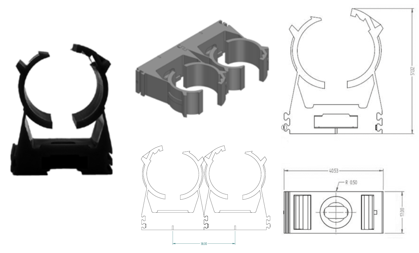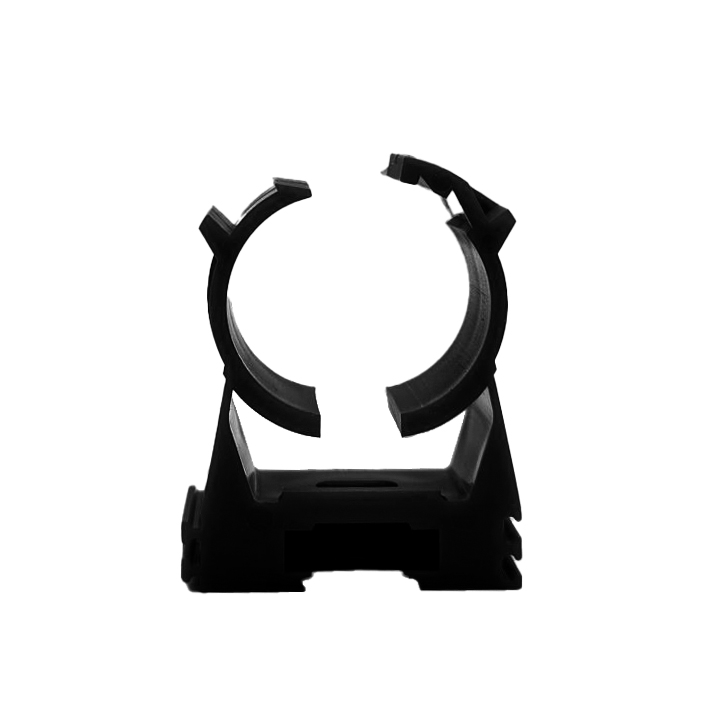 Aspirating smoke detection pipe clip, designed to support both 25 and 27mm smoke pipe, in either ABS, PVC, or CPVC polymers. The clip has a flexible side wall which allows the clip to open wide enough to allow the pipe to be placed within it’s circular cavity. The clip secures the pipe when closed. Slight discolouration many appear on the side wall, after repeated opening and closing. This does not affect the clips performance.